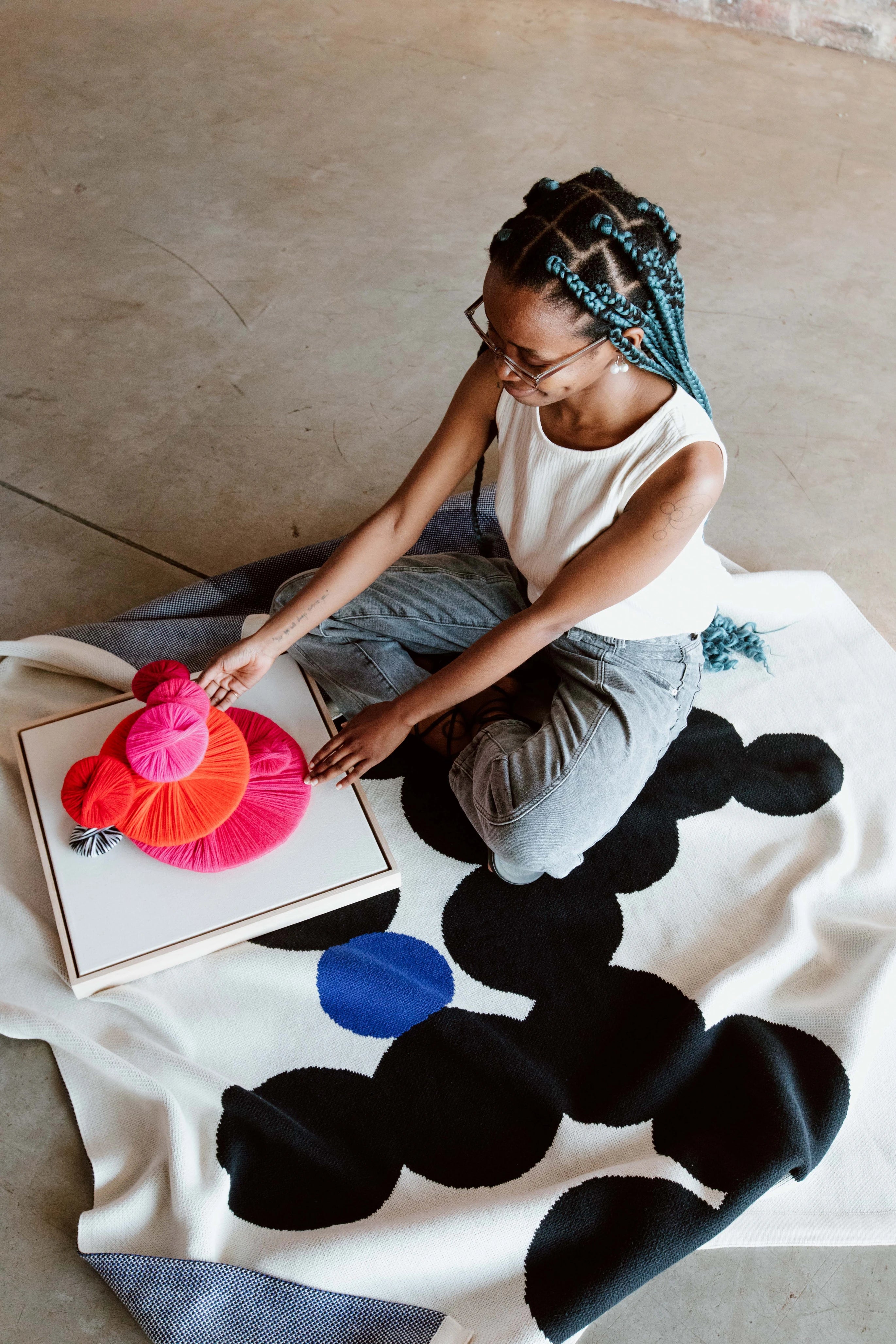 We are a collaborative studio, conceptualising and bringing to life stand-out textile pieces, from knitwear to design and collectable art. We work together with artists and designers whose work primarily portray a visual language of playfulness. Recent collaborators include designer TheUrbanative and artists Lulama Wolf, Maja Maljević, Renée Rossouw and Ditiro Mashigo.